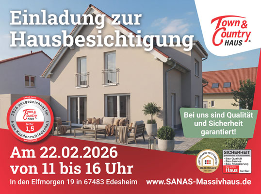 Den ersten Kontakt mit Town&Country somit mit der Firma Sanas hatten wir auf einer Messe in Landau. Wir haben uns dort mit mehreren Anbietern von Häusern unterhalten. Die Firma Sanas hat uns am meisten überzeugt. Einige Wochen später hatten wir einen Termin im Musterhaus in Edenkoben, was den ersten Eindruck bestätigte.